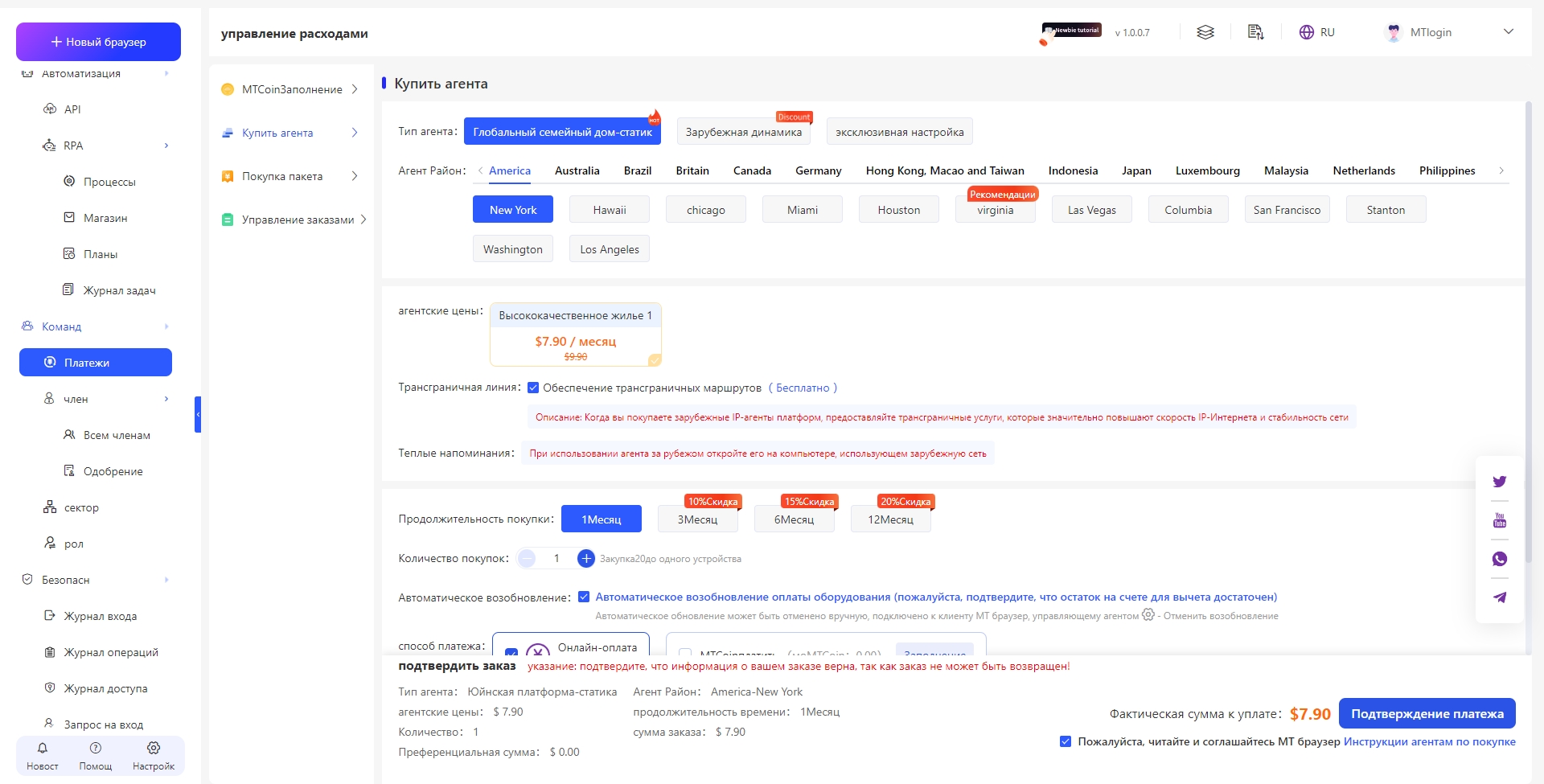 Цены на прокси могут колебаться в зависимости от изменений у поставщиков и периодически запускаемых акций среди многих других факторов. Конкретные цены и соответствующие скидки можно увидеть на пути покупки —【Управление прокси-Прокси платформы-Покупка прокси】или【Управление расходами-Покупка прокси】. Следующие страницы предназначены только для справки, актуально отображение в клиенте.