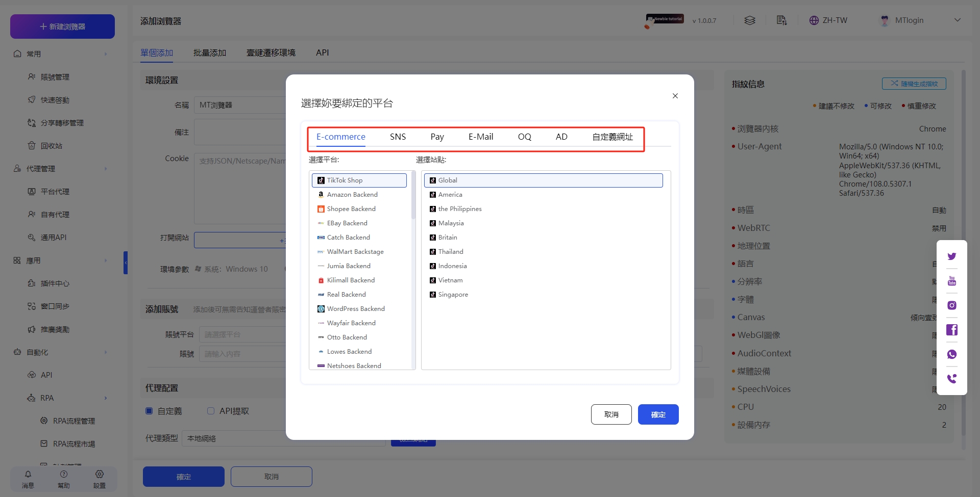 在新建帳號時,選擇帳號平台或者填入其他平台網址均可!